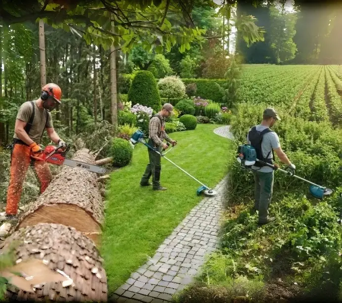 Landscaping: Municipal garden pruning, fruit tree horticultural maintenance, and lawn mowing.